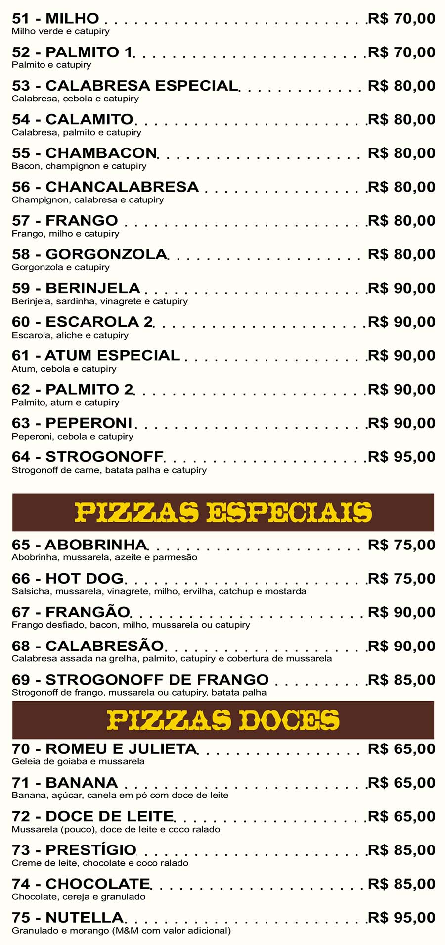 4. Ao fazer seu pedido, especifique o número da pizza e quaisquer solicitações especiais (como “sem cebola” ou “sem pimentão”). Por exemplo: “Quero meia 13 e meia 14 sem cebola, e uma Coca Zero 2 litros”.