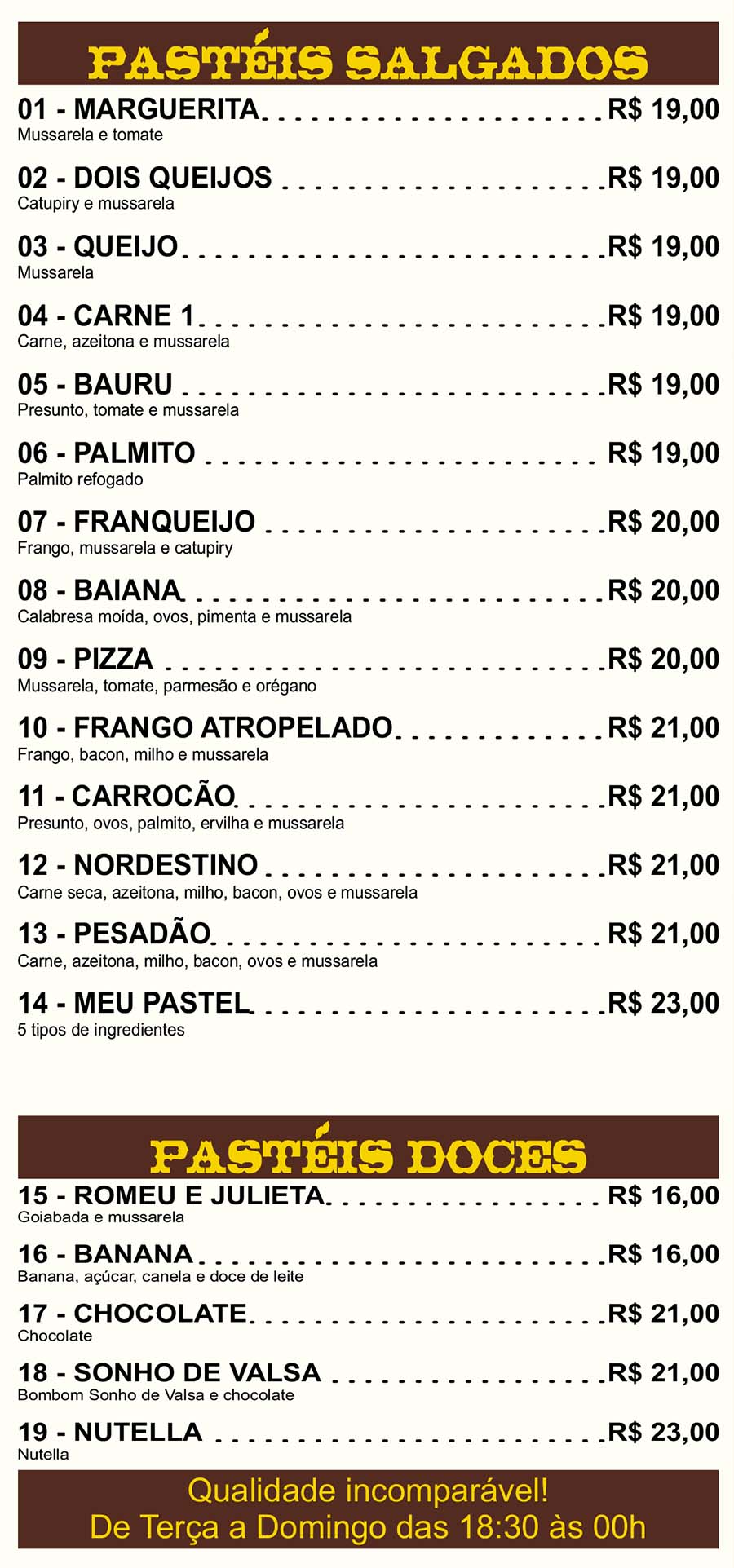 1. Escolha o número da pizza que você deseja. Você pode encontrar os números na lista de pizzas, pastéis e lanches aqui em nosso site, para ver a lista click no botão azul “CARDÁPIO”.